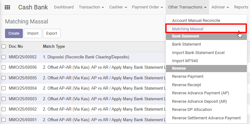 Dengan adanya Matching Massal, proses pengecekan dan verifikasi transaksi menjadi lebih teratur, terdokumentasi, dan mudah dikontrol.